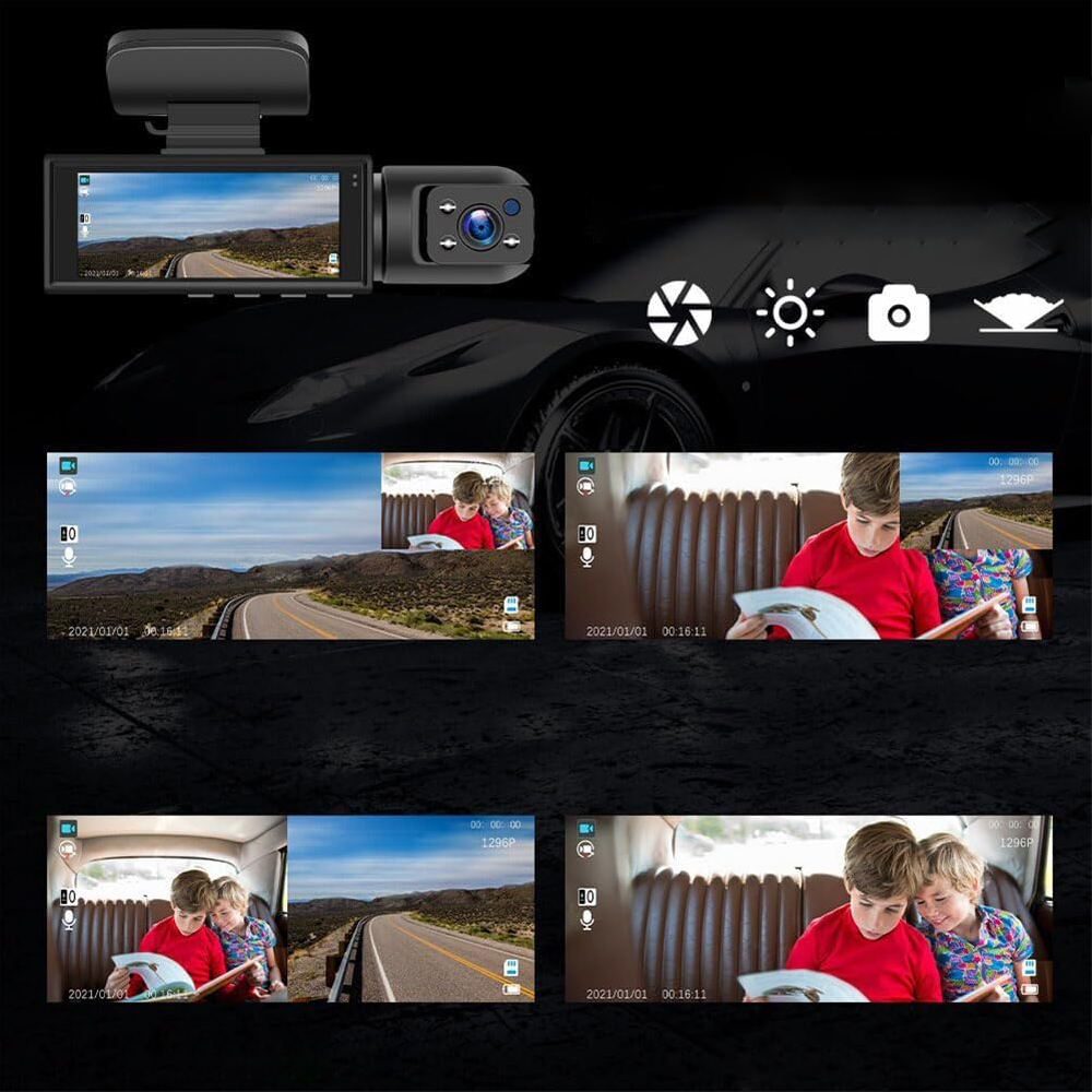 Unsere Dual-Kamera-Dashcam bietet Front- und Innenaufnahmen gleichzeitig, Starlight-Nachtsicht, Loop-Aufnahme, G-Sensor und Parküberwachung. Jedes Feature ist darauf ausgelegt, Ihre Sicherheit zu erhöhen und jedes Detail auf der Straße zuverlässig zu erfassen.