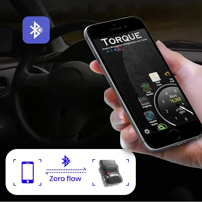 Dank moderner Bluetooth-Technologie verbindet sich der OBD2-Scanner in Sekunden mit Ihrem Smartphone oder Autoradio. Die kabellose Verbindung sorgt für eine stabile Datenübertragung in Echtzeit, sodass Fahrzeugdaten jederzeit zuverlässig und ohne Unterbrechungen angezeigt werden.