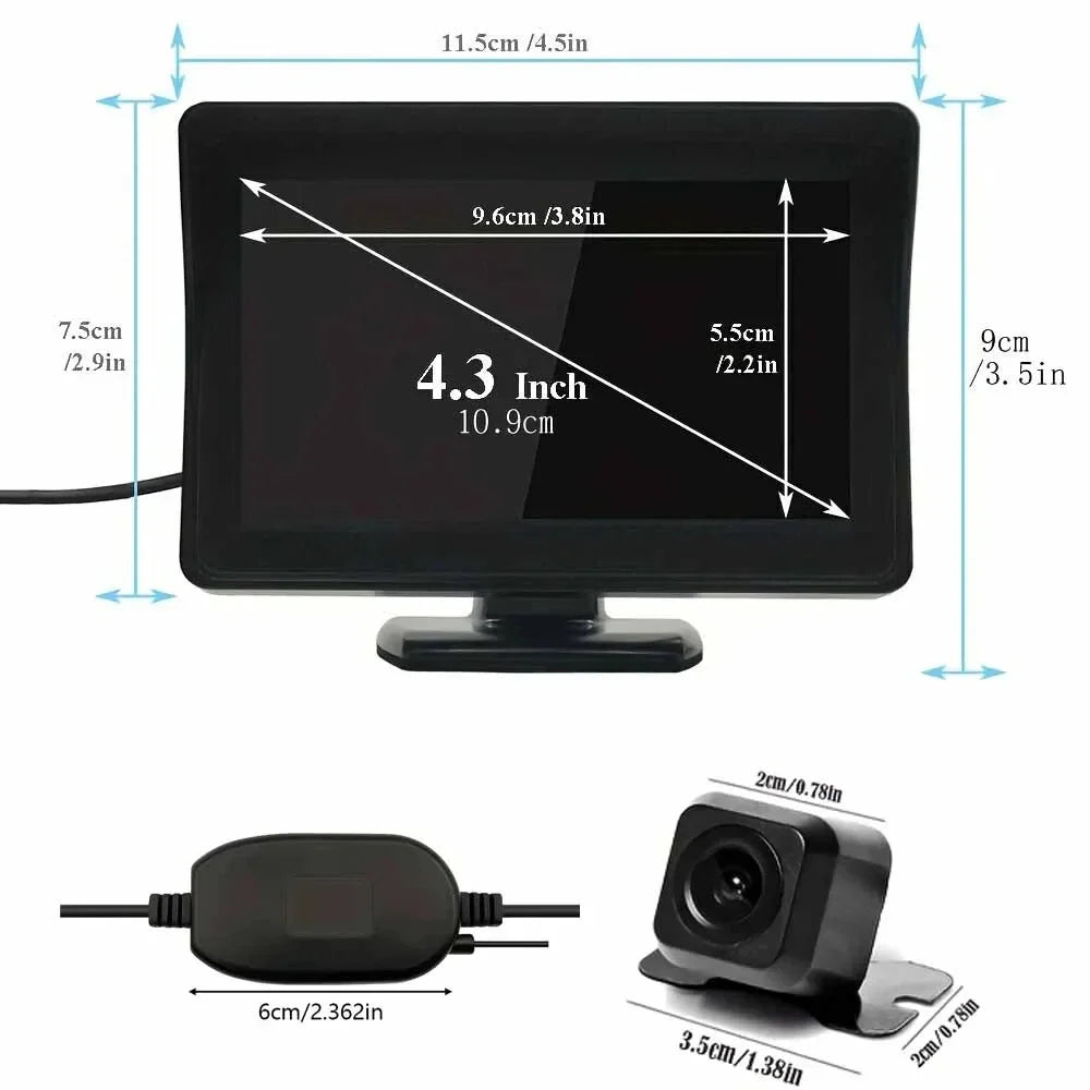 Unsere kabellose Rückfahrkamera unterstützt Sie beimsicheren Rückwärtsfahren und Einparken, indem sieeinen klaren Blick auf den Bereich hinter Ihrem Fahrzeugbietet. Der 4,3-Zoll-Monitor zeigtin Echtzeit Hindernisse und Details, sodass Unfälle oder Kratzer vermieden werden können.